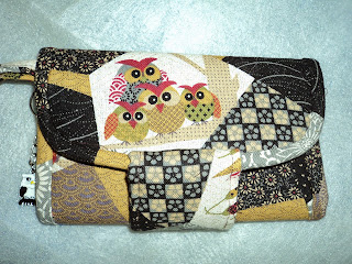 Família de corujinhas muito fofinhas enfeitam esta carteira de tecido.